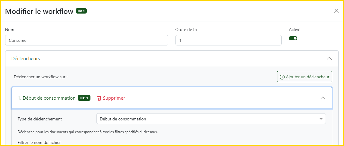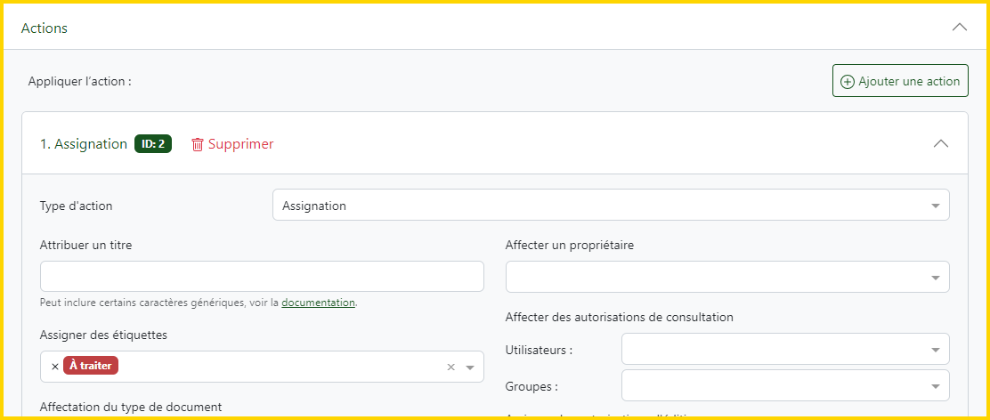 Réglez l'ordre de tri sur '1', pour s'assurer que ça sera la toute première automatisation faite lors de traitement de vos documents.