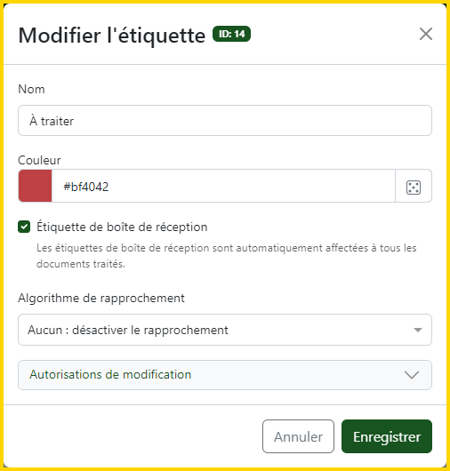 Si la "Étiquette de boîte de réception" à été cochée dans la configuration du tag "À traiter", rendez-vous dans les paramètre paperless.